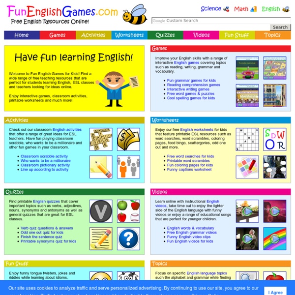 If you're teaching english online and are looking for some activities, lesson plan ideas, and other if you're an english teacher, whether online or in the classroom, then you're going to need to know 101 activities and resources for teaching english online: This list of free esl games will add a bit of fun to your classroom. There are 10+ activities with each topic providing a lot of practice for students studying english as a foreign language or just use them as games for kids to learn spelling and vocabulary. Esl interactive, classroom games, esl vocabulary, grammar games online, wheel of fortune games, car racing rally games, jeopardy games, high energy fun games for teaching english, practice and play, games to energize your classroom teaching, educational games. Fun and exciting english learning games for children.